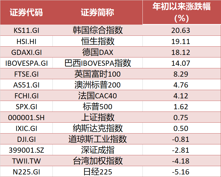 4月初,尽管受到特朗普“关税政策”冲击,恒指一度跌回至19260点,但港股市场很快收复失地。到6月11日,恒指涨至24366点,阶段涨幅达22%,港股市场迎来技术性牛市。截至6月13日,从全球主要市场股指年内涨幅来看,恒生指数累计涨幅达19.11%,仅次于韩国综指,位居第二。