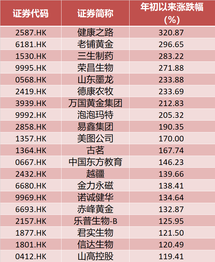 港股涨幅前20强揭晓:两只牛股涨超20倍万店优配