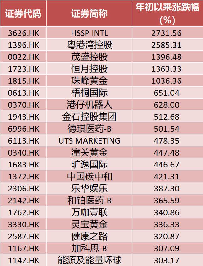 此外,上半年港股大牛股中,还有珠峰黄金、潼关黄金和灵宝黄金三只黄金股。其中,珠峰黄金年内涨幅超过10倍。