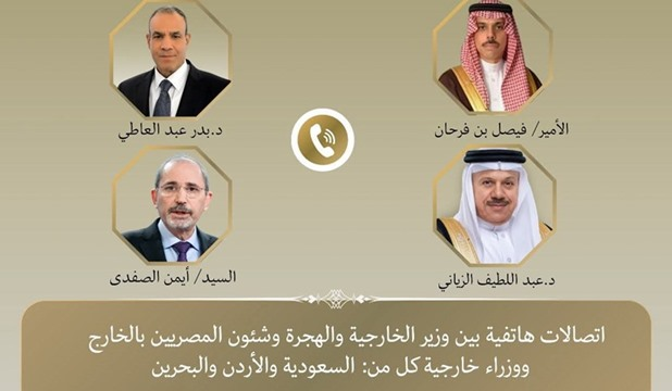 埃及、沙特、约旦及巴林外长通话 讨论伊以冲突问题各方一致强调,必须通过政治途径解决危机、努力缓和紧张局势、避免该地区陷入无休止的暴力循环。