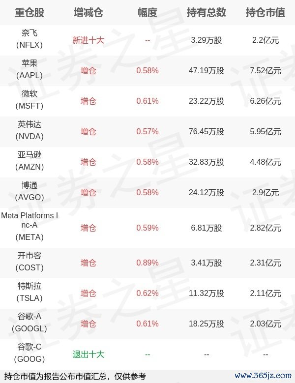 本站消息,4月22日华安基金旗下倪斌管理的华安纳斯达克100交易型开放式指数基金(QDII)公布一季报仁信配资,近1年净值增长率5.17%。与上一季度相比,该基金前十大重仓股新增奈飞;并对苹果增仓0.27万股,为该基金第一大重仓股;谷歌-C等退出前十大重仓股;详细数据如下: